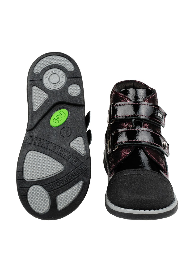 Удлинённый внутренний край каблука в удержит ножки вашего ребёнка в строго прямом положении, мешая заваливанию внутрь.