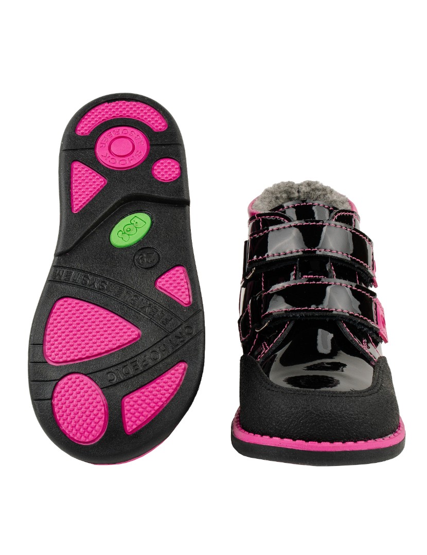 Удлинённый внутренний край каблука в удержит ножки вашего ребёнка в строго прямом положении, мешая заваливанию внутрь.