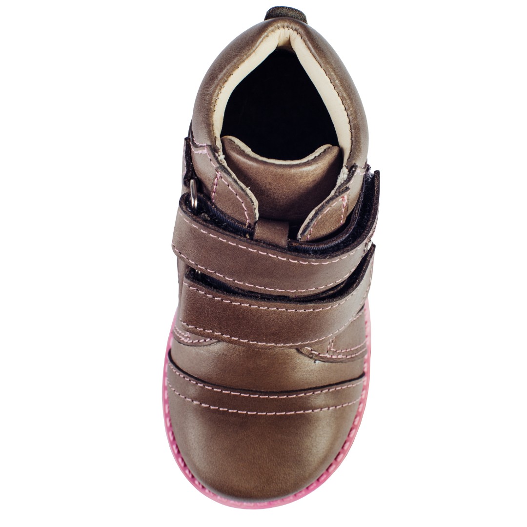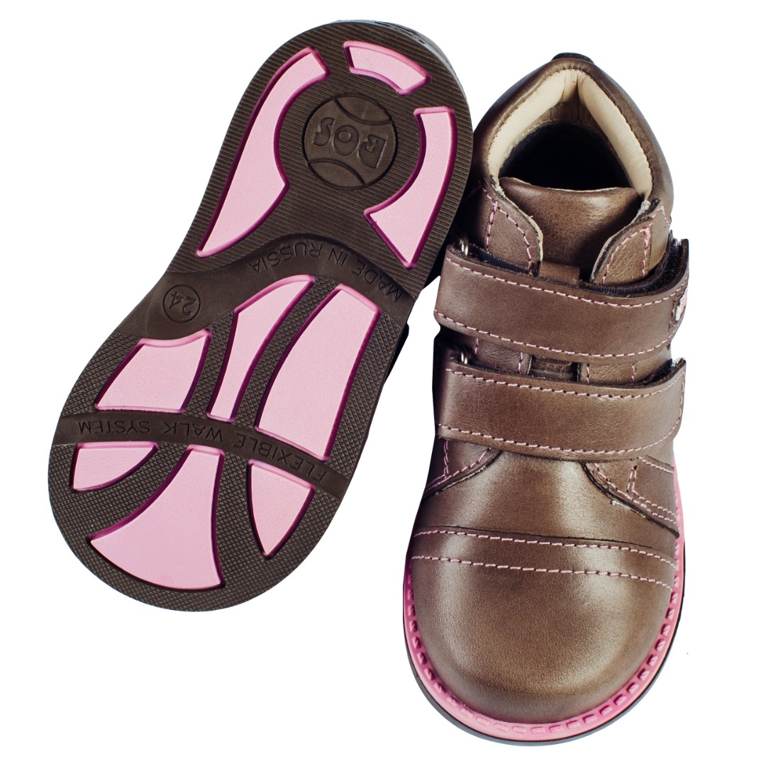 Удлинённый внутренний край каблука в удержит ножки вашего ребёнка в строго прямом положении, мешая заваливанию внутрь.
