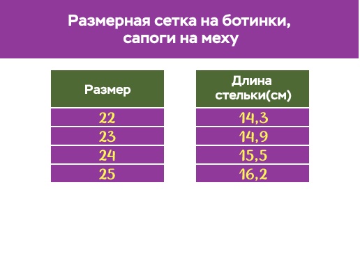 Данная модель сапожек выпускается с размерами от 22 до 25