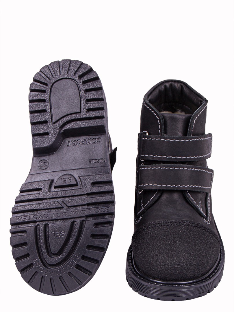 Утепленные ботинки  из натуральной кожи премиум-класса и подкладки из  шерстяного меха  согреют ножки ребенка. При выборе модели с шерстяным мехом, за счет плотности меха, рекомендуем выбирать детскую обувь на 1-1,5 размера больше. Внутри - съёмная стелька с активным супинатором. Жесткий задник надежно фиксирует голеностоп, а липучка "Велкро" помогает регулировать полноту. Умерено эластичная и прочная подошва с каблуком Томаса не скользит и хорошо поглощает ударную нагрузку, что позволяет ножкам ребенка не уставать.