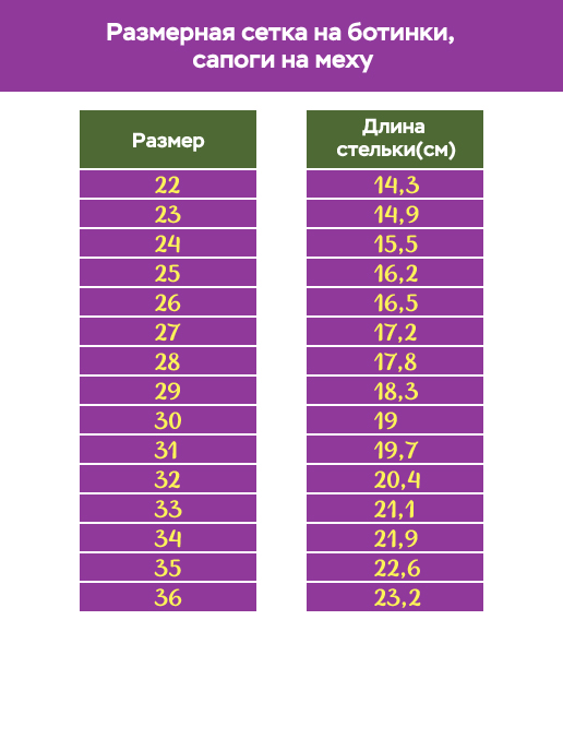 Данная модель ботинок выпускается с размерами от 26 до 36
