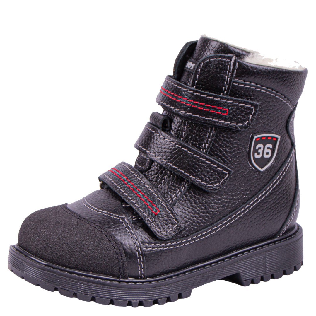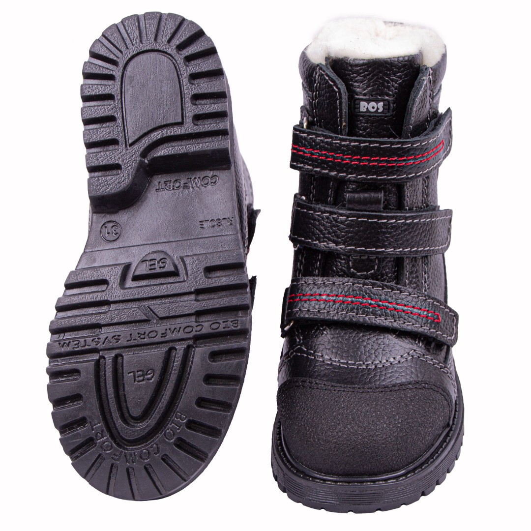 Утепленные ботинки  из натуральной кожи премиум-класса и подкладки из шерстяного меха, согреют ножки ребенка. При выборе модели с шерстяным мехом, за счет плотности меха, рекомендуем выбирать детскую обувь на 1-1,5 размера больше. Внутри - съёмная стелька с активным супинатором. Жесткий задник надежно фиксирует голеностоп, а липучка "Велкро" помогает регулировать полноту. Умерено эластичная и прочная подошва с каблуком Томаса не скользит и хорошо поглощает ударную нагрузку, что позволяет ножкам ребенка не уставать.
