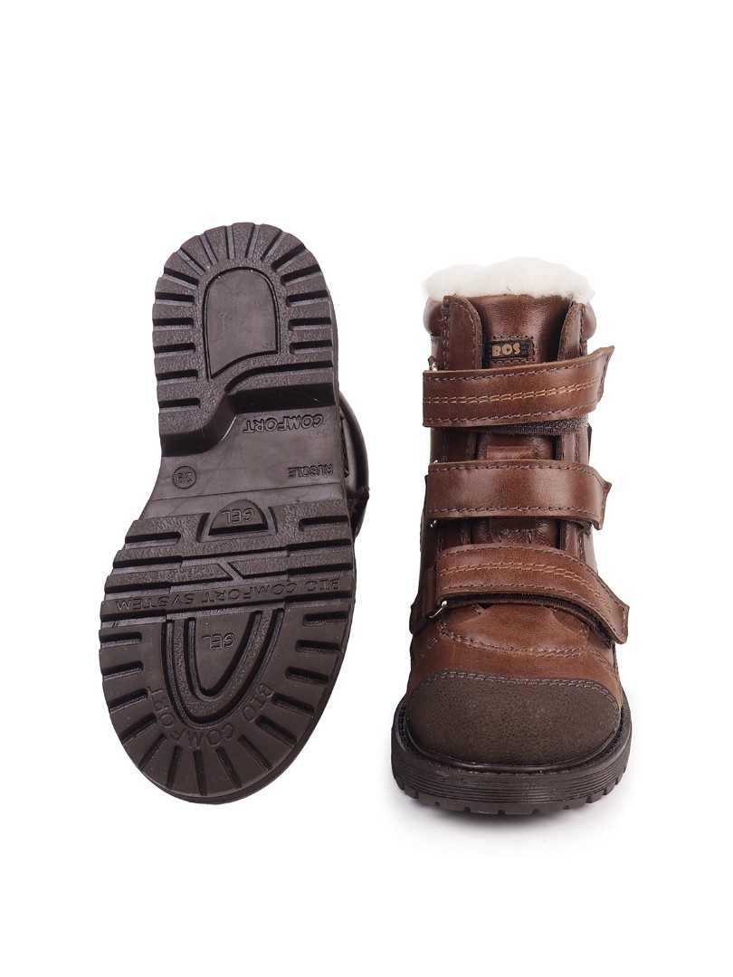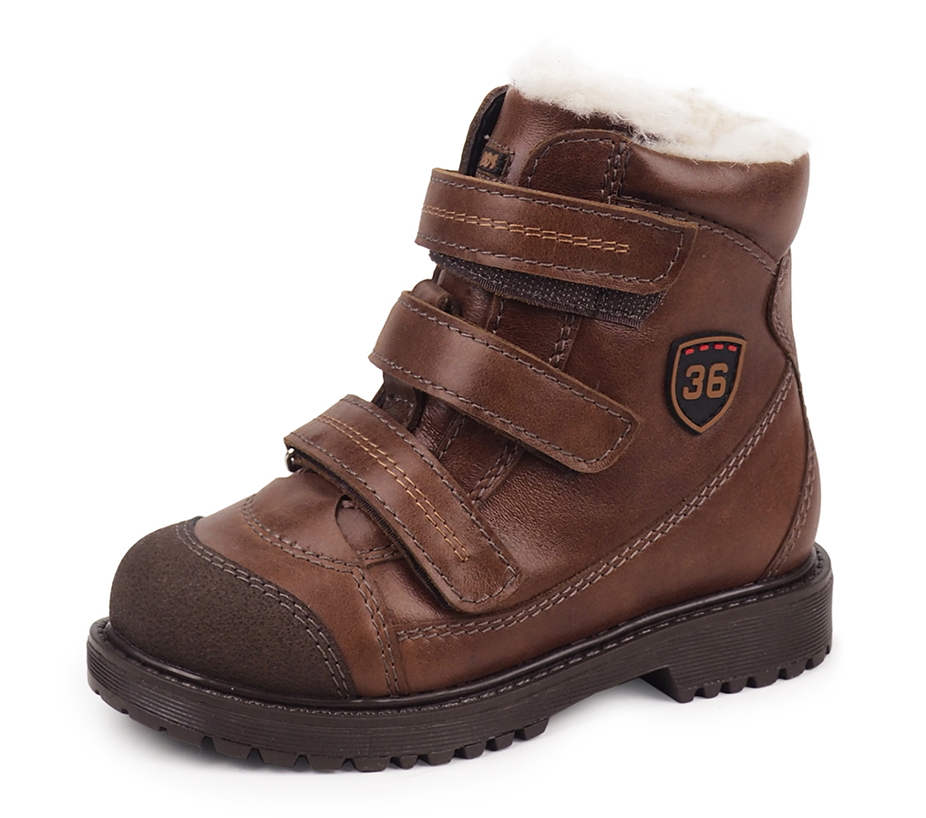 Утепленные ботинки из натуральной кожи премиум-класса и подкладки из шерстяного меха, согреют ножки ребенка. При выборе модели с шерстяным мехом, за счет плотности меха, рекомендуем выбирать детскую обувь на 1-1,5 размера больше. Внутри - съёмная стелька с активным супинатором. Жесткий задник надежно фиксирует голеностоп, а липучка "Велкро" помогает регулировать полноту. Умерено эластичная и прочная подошва с каблуком Томаса не скользит и хорошо поглощает ударную нагрузку, что позволяет ножкам ребенка не уставать.