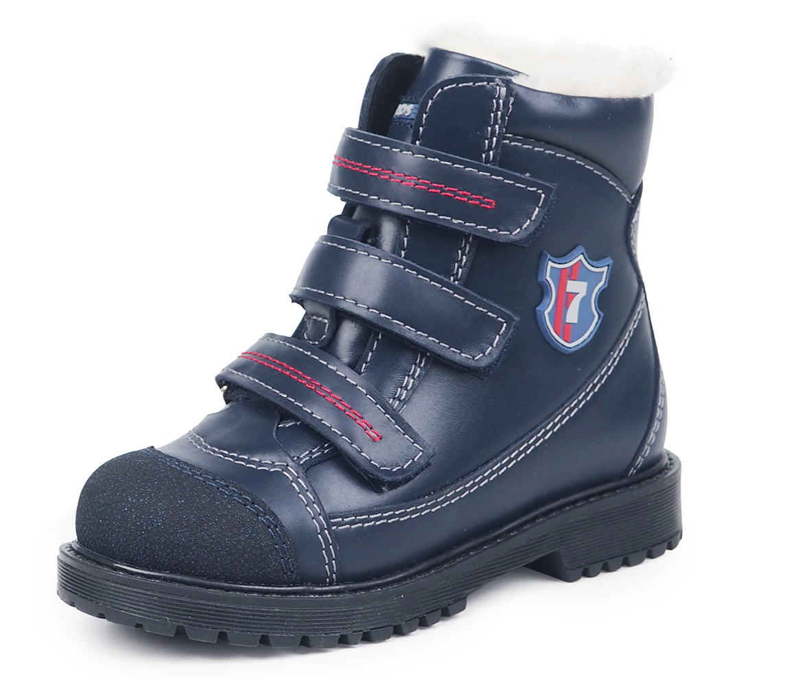 Утепленные ботинки  из натуральной кожи премиум-класса и подкладки из шерстяного меха, согреют ножки ребенка. При выборе модели с шерстяным мехом, за счет плотности меха, рекомендуем выбирать детскую обувь на 1-1,5 размера больше. Внутри - съёмная стелька с активным супинатором. Жесткий задник надежно фиксирует голеностоп, а липучка "Велкро" помогает регулировать полноту. Умерено эластичная и прочная подошва с каблуком Томаса не скользит и хорошо поглощает ударную нагрузку, что позволяет ножкам ребенка не уставать.