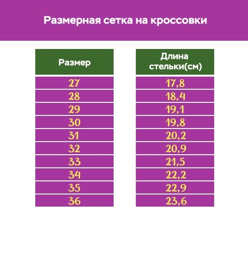 Данная модель кроссовок выпускается с размерами от 27 до 36