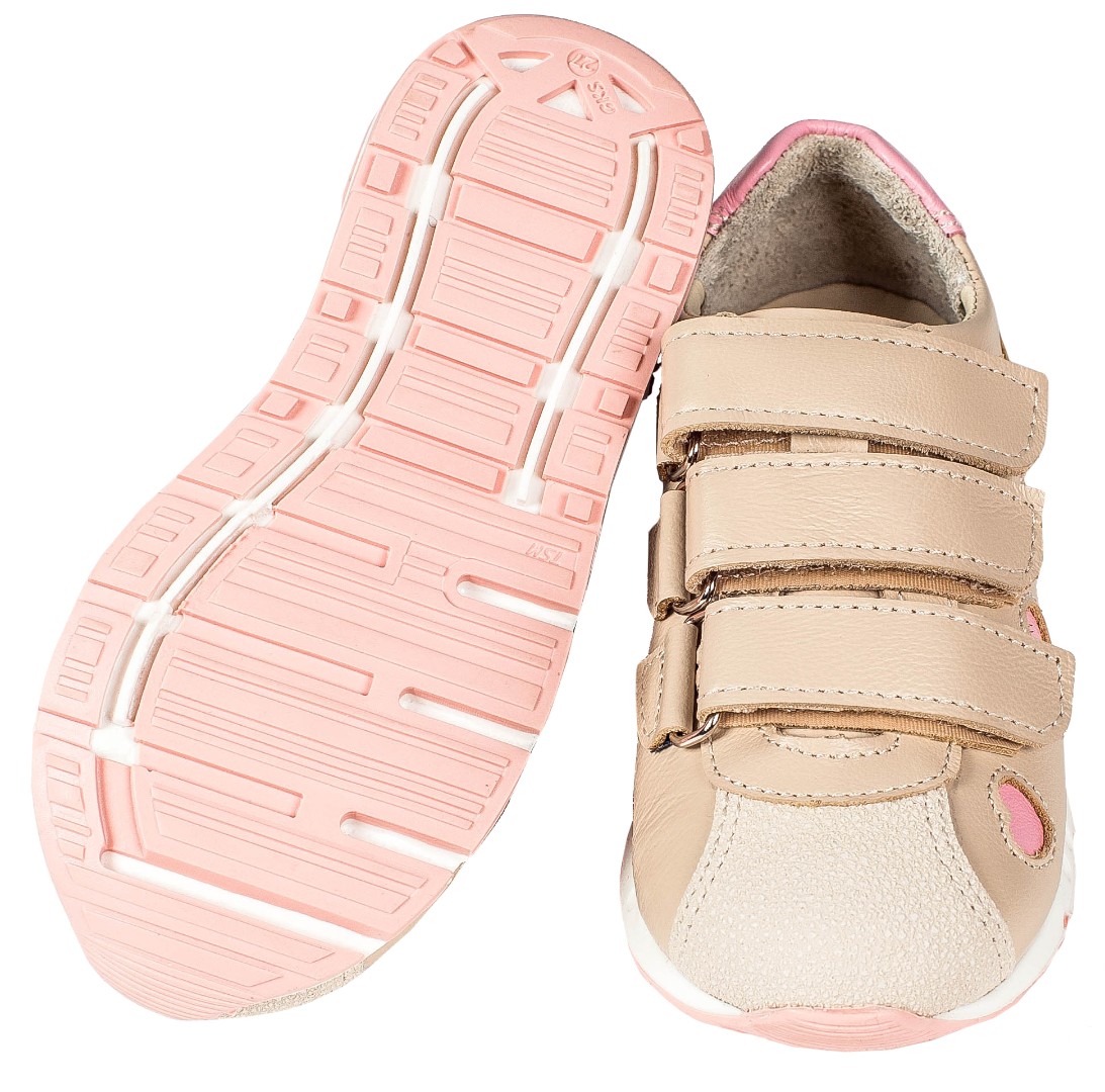 Кроссовки самая популярная обувь у детей. Ортопедические кроссовки для девочки выполнены из натуральной кожи премиум-класса внутри и снаружи, обеспечат комфорт ножкам ребенка. Внутри - съёмная стелька с активным супинатором. Жесткий задник надежно фиксирует голеностоп. Липучки "Велкро" регулируют полноту. Умерено эластичная и прочная подошва не скользит и хорошо поглощает ударную нагрузку во время прогулок, что позволяет ножкам ребенка не уставать.