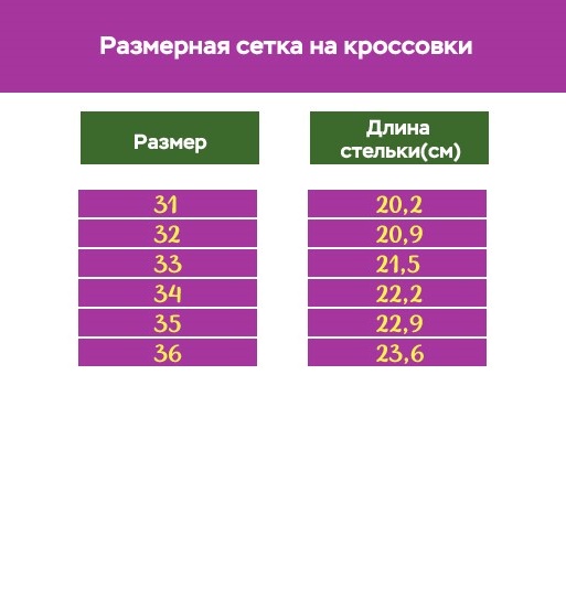 Данная модель кроссовок выпускается с размерами от 31 до 36