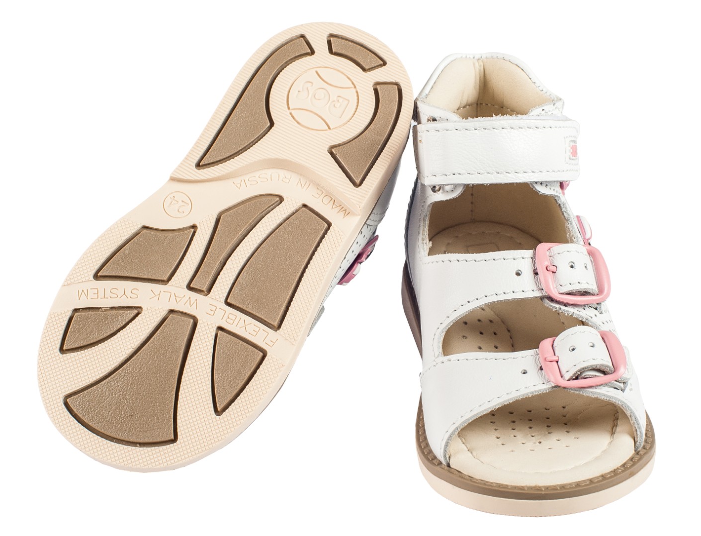 Ортопедические сандалии для профилактики и коррекции плоскостопия и плосковальгусной установки стоп. Широкий, устойчивый каблук специальной конфигурации - каблук Томаса. Каблук продлен с внутренней стороны до середины стопы, чтобы исключить заваливание стопы вовнутрь, так называемая косолапость, или вальгусная деформация. Анатомическая стелька с супинатором для правильного формирования свода стопы. Задник максимальной жесткости с удлиненным крылом надежно стабилизирует голеностопный сустав во время ходьбы. Упругая, умеренно-эластичная подошва, имеющая перекат, позволяет повторить естественное движение стопы при ходьбе для правильного распределения нагрузки на опорно-двигательный аппарат ребенка.
