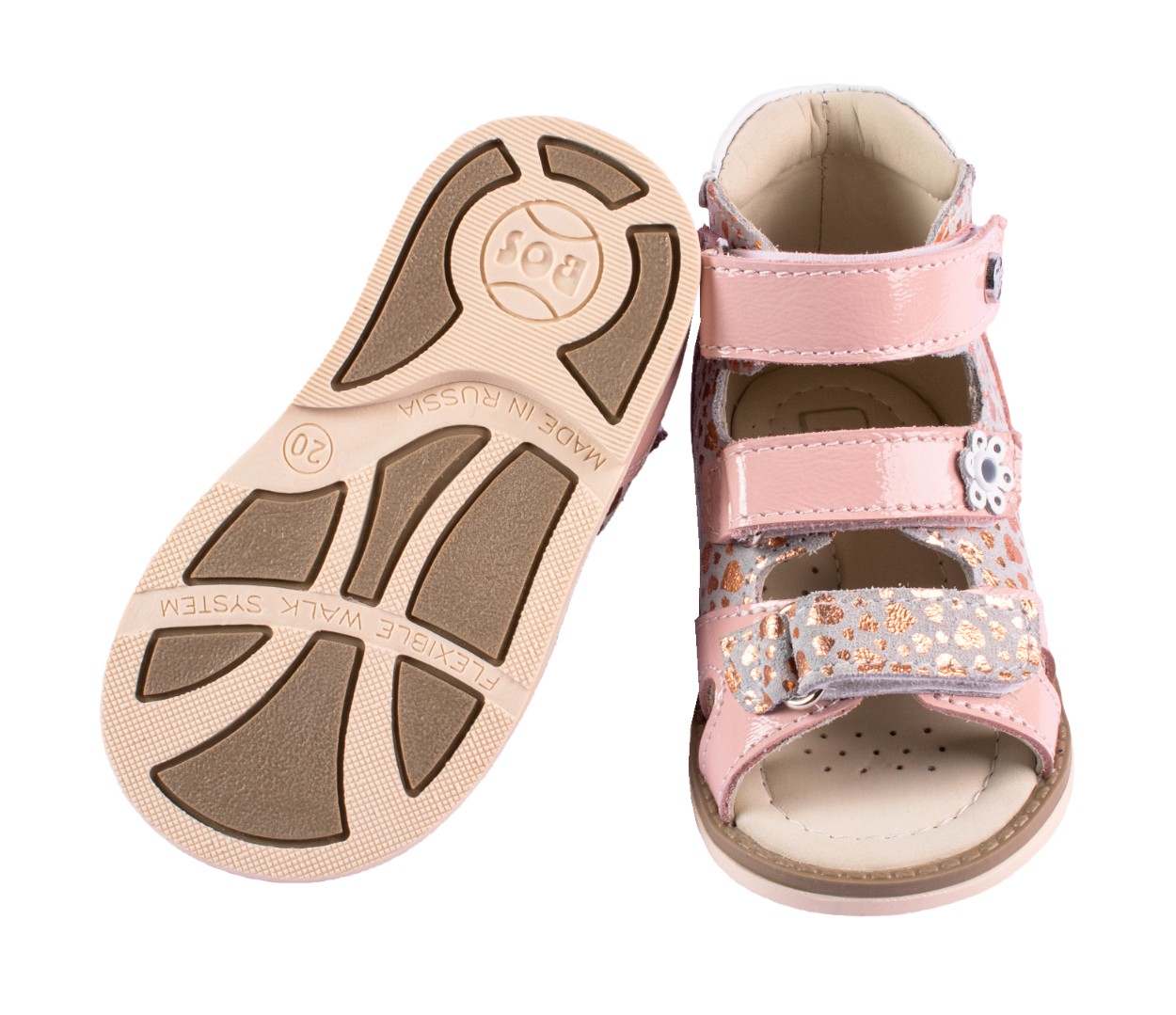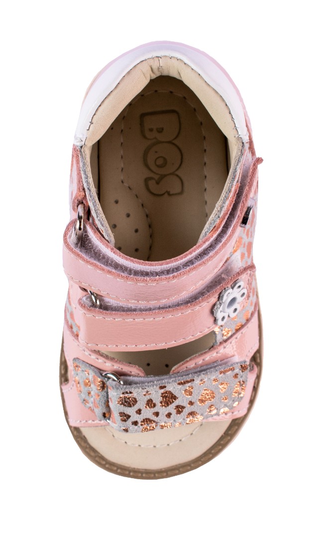 Ортопедические сандалии для профилактики и коррекции плоскостопия и плосковальгусной установки стоп. Широкий, устойчивый каблук специальной конфигурации - каблук Томаса. Каблук продлен с внутренней стороны до середины стопы, чтобы исключить заваливание стопы вовнутрь, так называемая косолапость, или вальгусная деформация. Анатомическая стелька с супинатором для правильного формирования свода стопы. Задник максимальной жесткости с удлиненным крылом надежно стабилизирует голеностопный сустав во время ходьбы. Упругая, умеренно-эластичная подошва, имеющая перекат, позволяет повторить естественное движение стопы при ходьбе для правильного распределения нагрузки на опорно-двигательный аппарат ребенка.