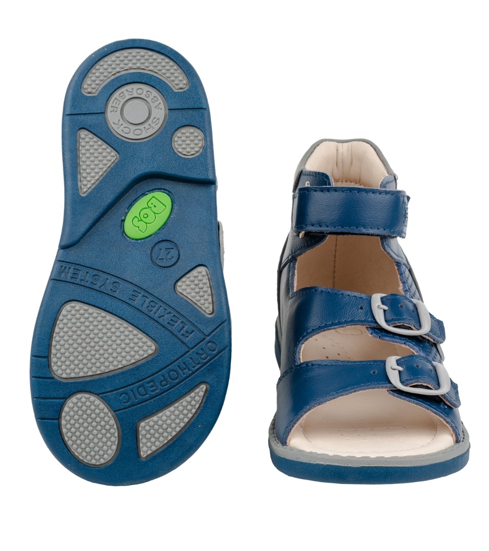 Сандалии для профилактики плоскостопия и плосковальгусной установки стоп. Широкий, устойчивый каблук специальной конфигурации - каблук Томаса. Каблук продлен с внутренней стороны до середины стопы, чтобы исключить заваливание стопы вовнутрь, так называемая косолапость, или вальгусная деформация. Анатомическая стелька с супинатором для правильного формирования свода стопы. Задник максимальной жесткости с удлиненным крылом надежно стабилизирует голеностопный сустав во время ходьбы. Упругая, умеренно-эластичная подошва, имеющая перекат, позволяет повторить естественное движение стопы при ходьбе для правильного распределения нагрузки на опорно-двигательный аппарат ребенка.