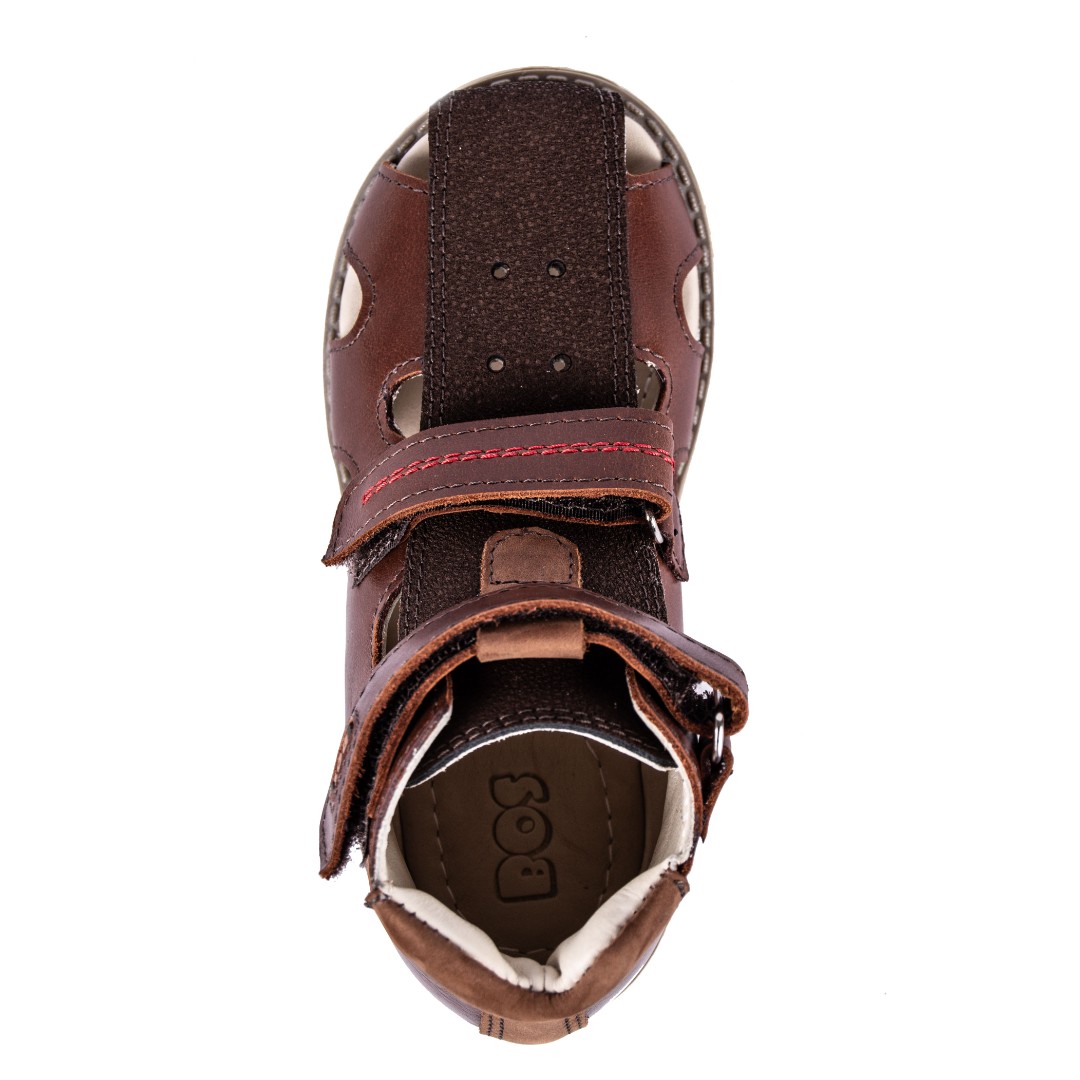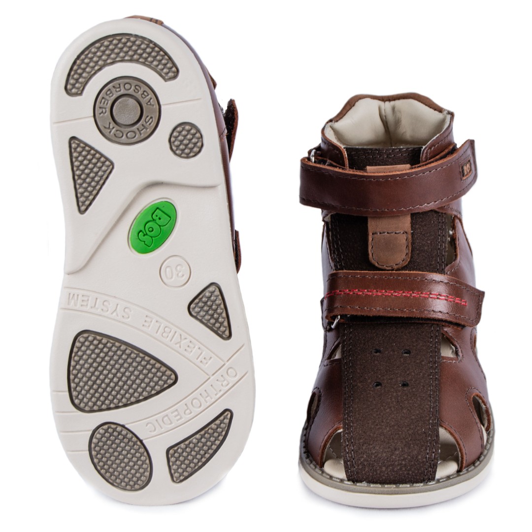 Сандалии для профилактики плоскостопия и плосковальгусной установки стоп. Широкий, устойчивый каблук специальной конфигурации - каблук Томаса. Каблук продлен с внутренней стороны до середины стопы, чтобы исключить заваливание стопы вовнутрь, так называемая косолапость, или вальгусная деформация. Анатомическая стелька с супинатором для правильного формирования свода стопы. Задник максимальной жесткости с удлиненным крылом надежно стабилизирует голеностопный сустав во время ходьбы. Упругая, умеренно-эластичная подошва, имеющая перекат, позволяет повторить естественное движение стопы при ходьбе для правильного распределения нагрузки на опорно-двигательный аппарат ребенка.