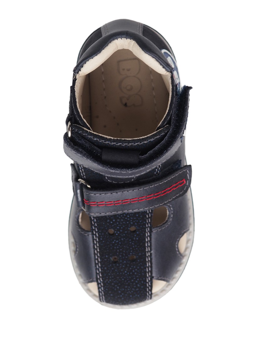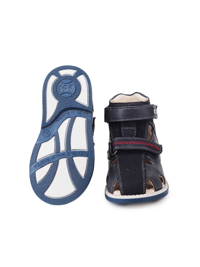Сандалии для профилактики плоскостопия и плосковальгусной установки стоп. Широкий, устойчивый каблук специальной конфигурации - каблук Томаса. Каблук продлен с внутренней стороны до середины стопы, чтобы исключить заваливание стопы вовнутрь, так называемая косолапость, или вальгусная деформация. Анатомическая стелька с супинатором для правильного формирования свода стопы. Задник максимальной жесткости с удлиненным крылом надежно стабилизирует голеностопный сустав во время ходьбы. Упругая, умеренно-эластичная подошва, имеющая перекат, позволяет повторить естественное движение стопы при ходьбе для правильного распределения нагрузки на опорно-двигательный аппарат ребенка.