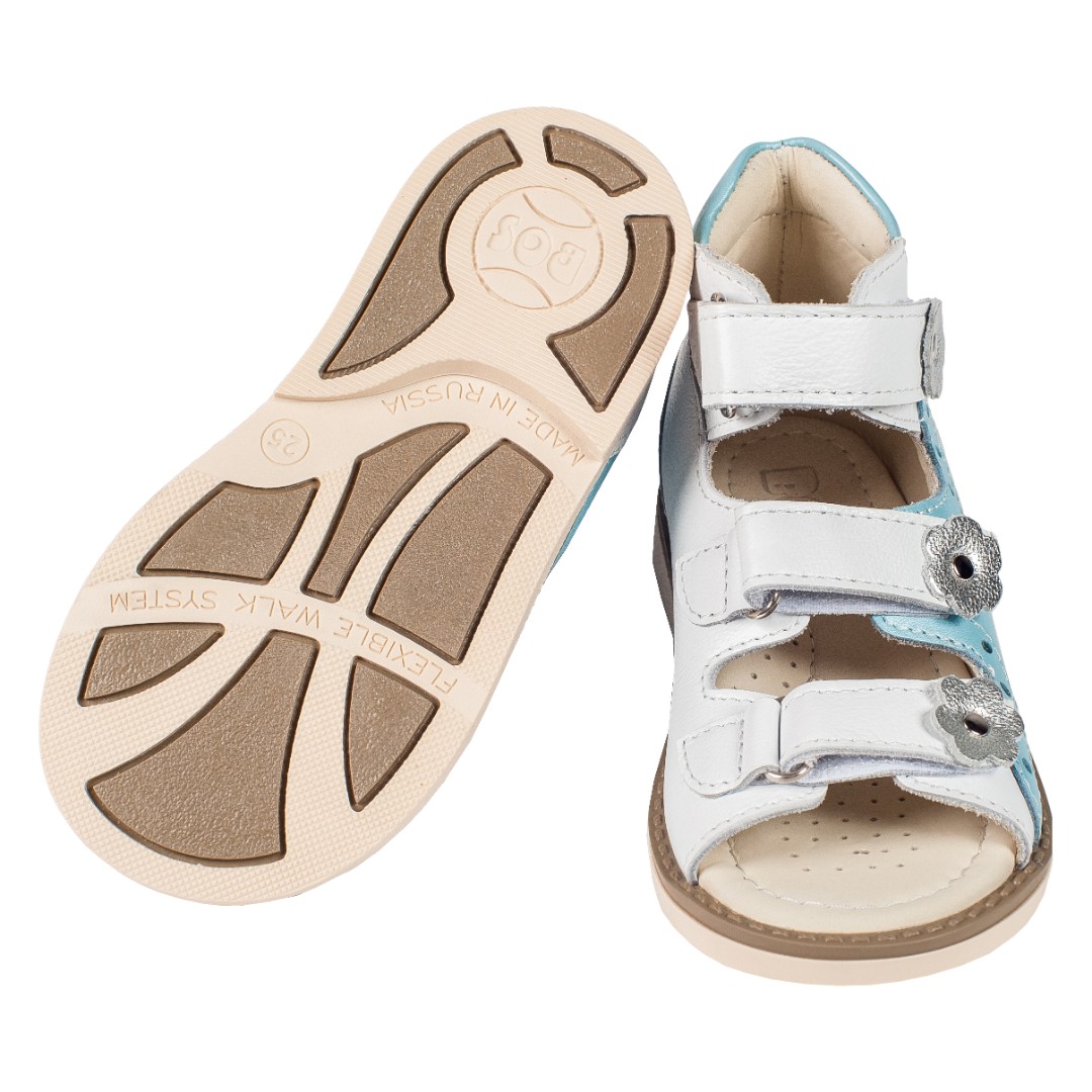 Ортопедические сандалии для профилактики и коррекции плоскостопия и плосковальгусной установки стоп. Широкий, устойчивый каблук специальной конфигурации - каблук Томаса. Каблук продлен с внутренней стороны до середины стопы, чтобы исключить заваливание стопы вовнутрь, так называемая косолапость, или вальгусная деформация. Анатомическая стелька с супинатором для правильного формирования свода стопы. Задник максимальной жесткости с удлиненным крылом надежно стабилизирует голеностопный сустав во время ходьбы. Упругая, умеренно-эластичная подошва, имеющая перекат, позволяет повторить естественное движение стопы при ходьбе для правильного распределения нагрузки на опорно-двигательный аппарат ребенка
