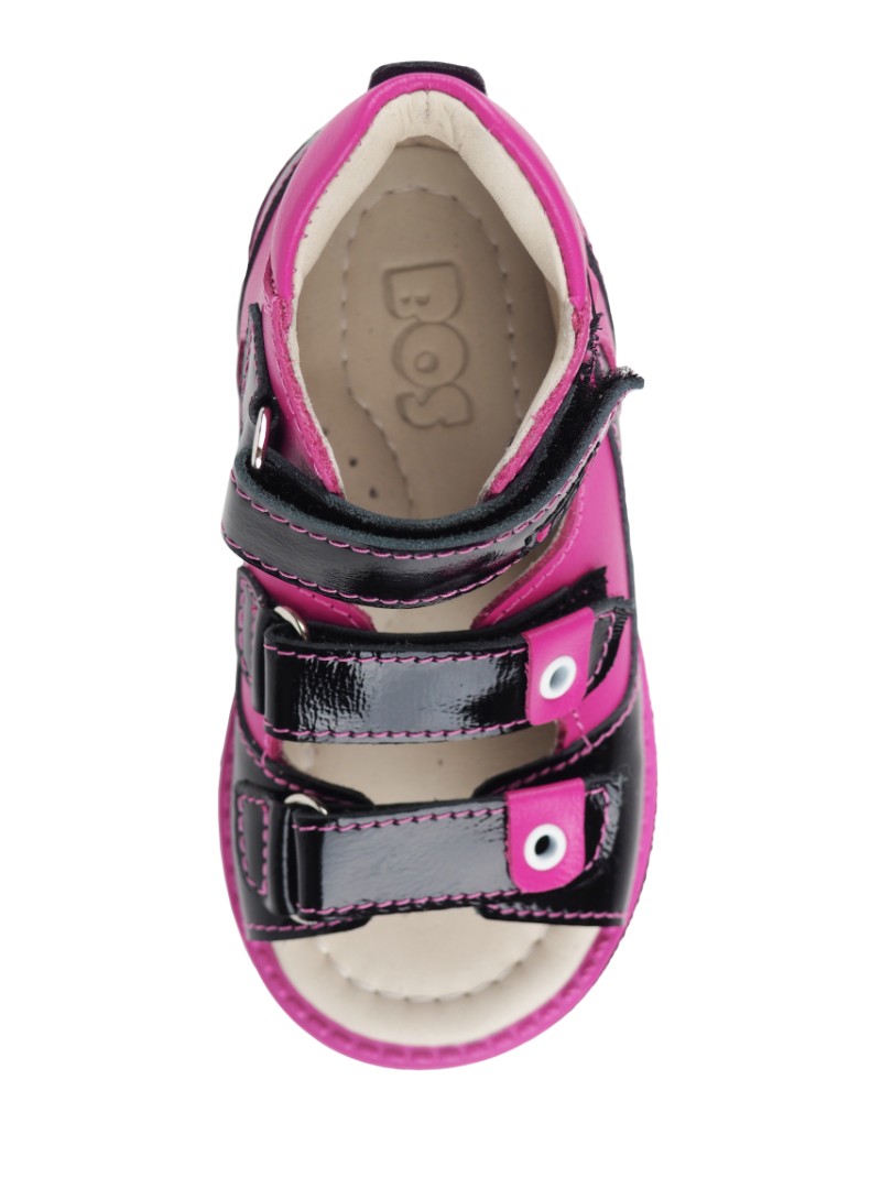 Ортопедические сандалии для профилактики и коррекции плоскостопия и плосковальгусной установки стоп. Широкий, устойчивый каблук специальной конфигурации - каблук Томаса. Каблук продлен с внутренней стороны до середины стопы, чтобы исключить заваливание стопы вовнутрь, так называемая косолапость, или вальгусная деформация. Анатомическая стелька с супинатором для правильного формирования свода стопы. Задник максимальной жесткости с удлиненным крылом надежно стабилизирует голеностопный сустав во время ходьбы. Упругая, умеренно-эластичная подошва, имеющая перекат, позволяет повторить естественное движение стопы при ходьбе для правильного распределения нагрузки на опорно-двигательный аппарат ребенка.