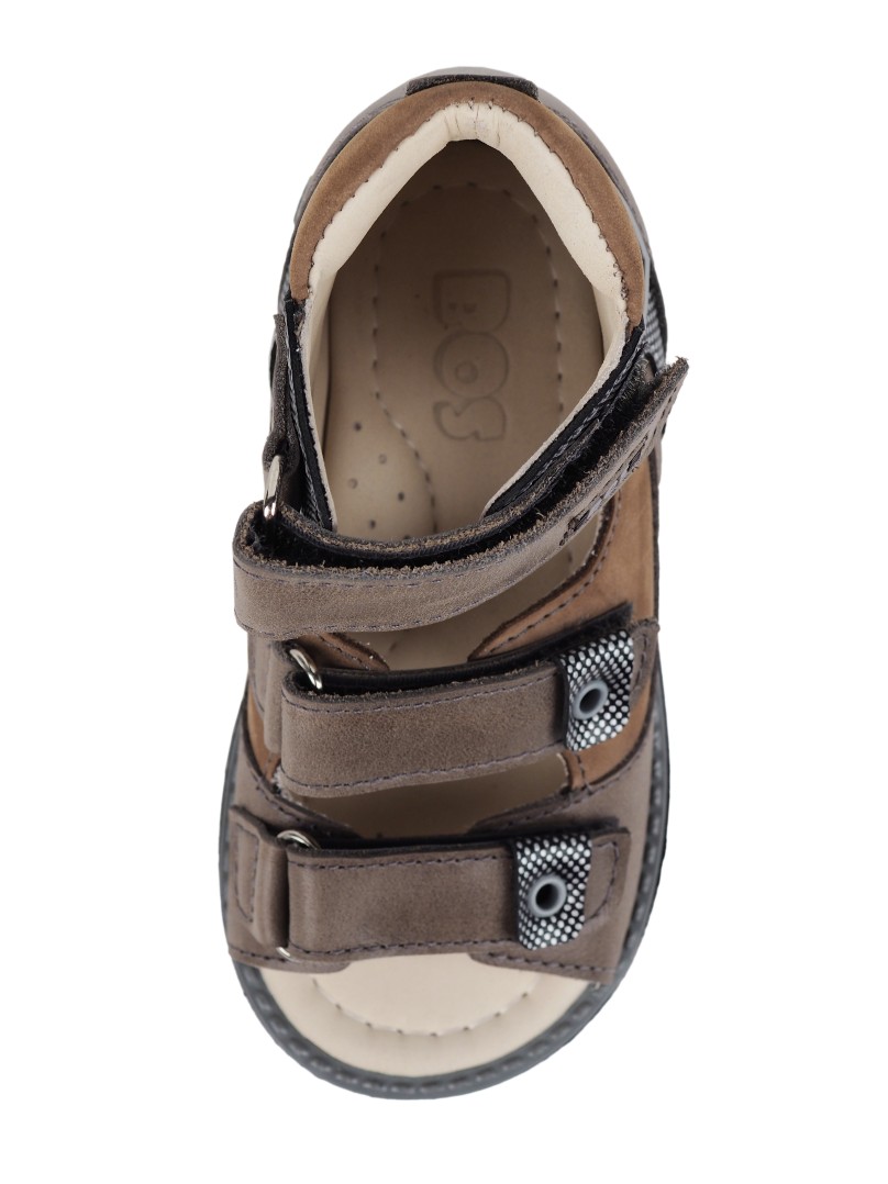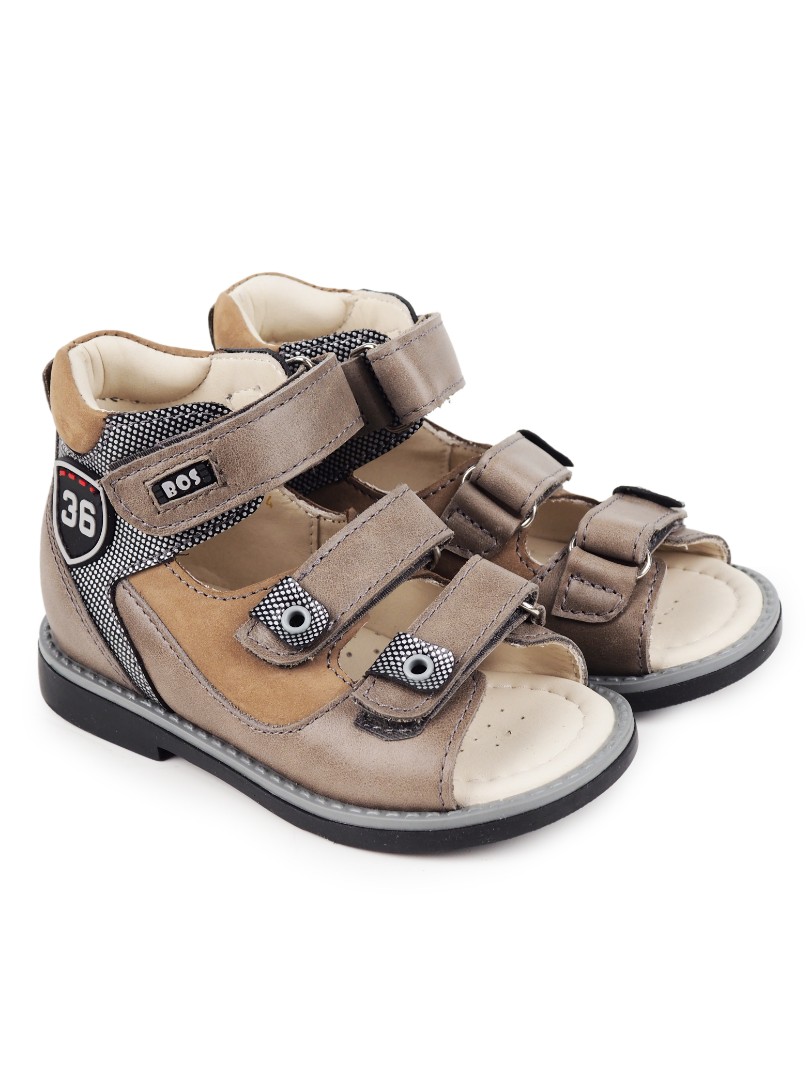 Сандалии для профилактики плоскостопия и плосковальгусной установки стоп. Широкий, устойчивый каблук специальной конфигурации - каблук Томаса. Каблук продлен с внутренней стороны до середины стопы, чтобы исключить заваливание стопы вовнутрь, так называемая косолапость, или вальгусная деформация. Анатомическая стелька с супинатором для правильного формирования свода стопы. Задник максимальной жесткости с удлиненным крылом надежно стабилизирует голеностопный сустав во время ходьбы. Упругая, умеренно-эластичная подошва, имеющая перекат, позволяет повторить естественное движение стопы при ходьбе для правильного распределения нагрузки на опорно-двигательный аппарат ребенка.