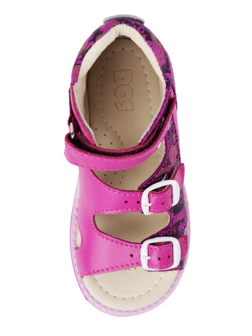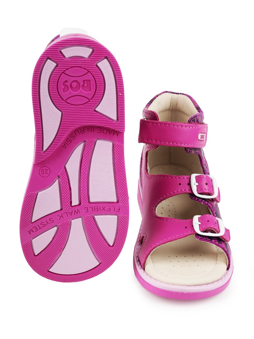 Ортопедические сандалии для профилактики и коррекции плоскостопия и плосковальгусной установки стоп. Широкий, устойчивый каблук специальной конфигурации - каблук Томаса. Каблук продлен с внутренней стороны до середины стопы, чтобы исключить заваливание стопы вовнутрь, так называемая косолапость, или вальгусная деформация. Анатомическая стелька с супинатором для правильного формирования свода стопы. Задник максимальной жесткости с удлиненным крылом надежно стабилизирует голеностопный сустав во время ходьбы. Упругая, умеренно-эластичная подошва, имеющая перекат, позволяет повторить естественное движение стопы при ходьбе для правильного распределения нагрузки на опорно-двигательный аппарат ребенка.