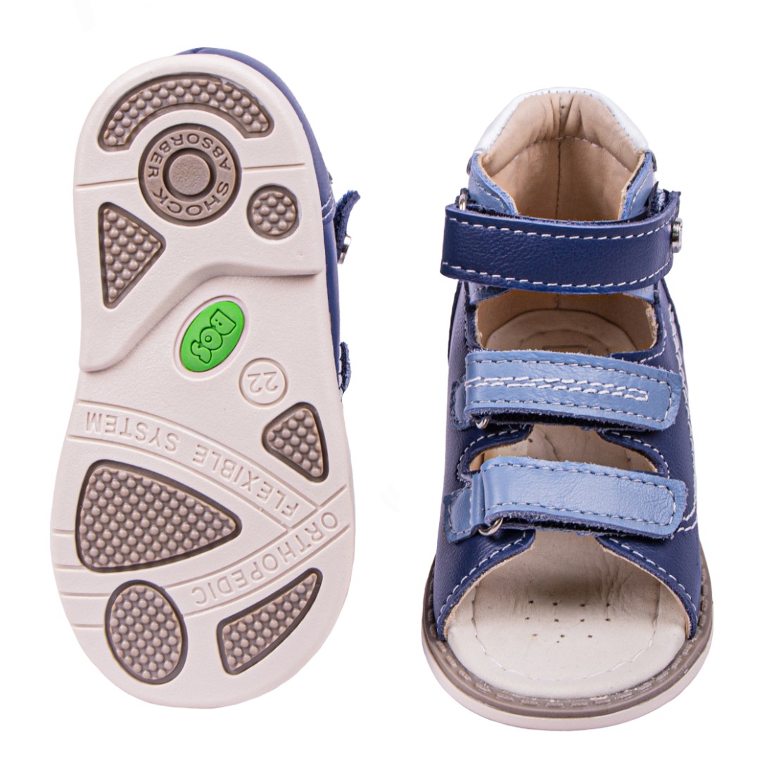 Сандалии для профилактики плоскостопия и плосковальгусной установки стоп. Широкий, устойчивый каблук специальной конфигурации - каблук Томаса. Каблук продлен с внутренней стороны до середины стопы, чтобы исключить заваливание стопы вовнутрь, так называемая косолапость, или вальгусная деформация. Анатомическая стелька с супинатором для правильного формирования свода стопы. Задник максимальной жесткости с удлиненным крылом надежно стабилизирует голеностопный сустав во время ходьбы. Упругая, умеренно-эластичная подошва, имеющая перекат, позволяет повторить естественное движение стопы при ходьбе для правильного распределения нагрузки на опорно-двигательный аппарат ребенка.
