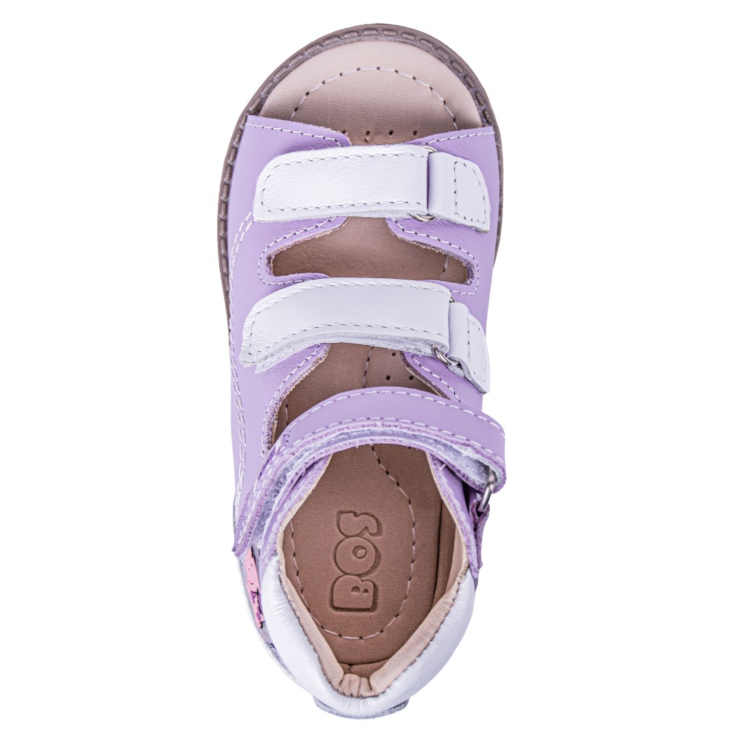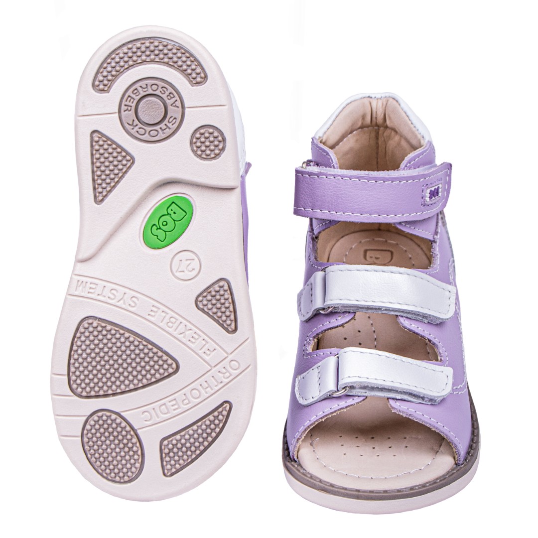 Ортопедические сандалии для профилактики и коррекции плоскостопия и плосковальгусной установки стоп. Широкий, устойчивый каблук специальной конфигурации - каблук Томаса. Каблук продлен с внутренней стороны до середины стопы, чтобы исключить заваливание стопы вовнутрь, так называемая косолапость, или вальгусная деформация. Анатомическая стелька с супинатором для правильного формирования свода стопы. Задник максимальной жесткости с удлиненным крылом надежно стабилизирует голеностопный сустав во время ходьбы. Упругая, умеренно-эластичная подошва, имеющая перекат, позволяет повторить естественное движение стопы при ходьбе для правильного распределения нагрузки на опорно-двигательный аппарат ребенка.