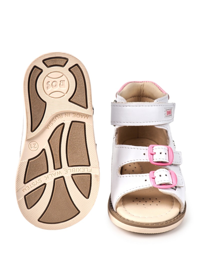 Ортопедические сандалии для профилактики и коррекции плоскостопия и плосковальгусной установки стоп. Широкий, устойчивый каблук специальной конфигурации - каблук Томаса. Каблук продлен с внутренней стороны до середины стопы, чтобы исключить заваливание стопы вовнутрь, так называемая косолапость, или вальгусная деформация. Анатомическая стелька с супинатором для правильного формирования свода стопы. Задник максимальной жесткости с удлиненным крылом надежно стабилизирует голеностопный сустав во время ходьбы. Упругая, умеренно-эластичная подошва, имеющая перекат, позволяет повторить естественное движение стопы при ходьбе для правильного распределения нагрузки на опорно-двигательный аппарат ребенка.
