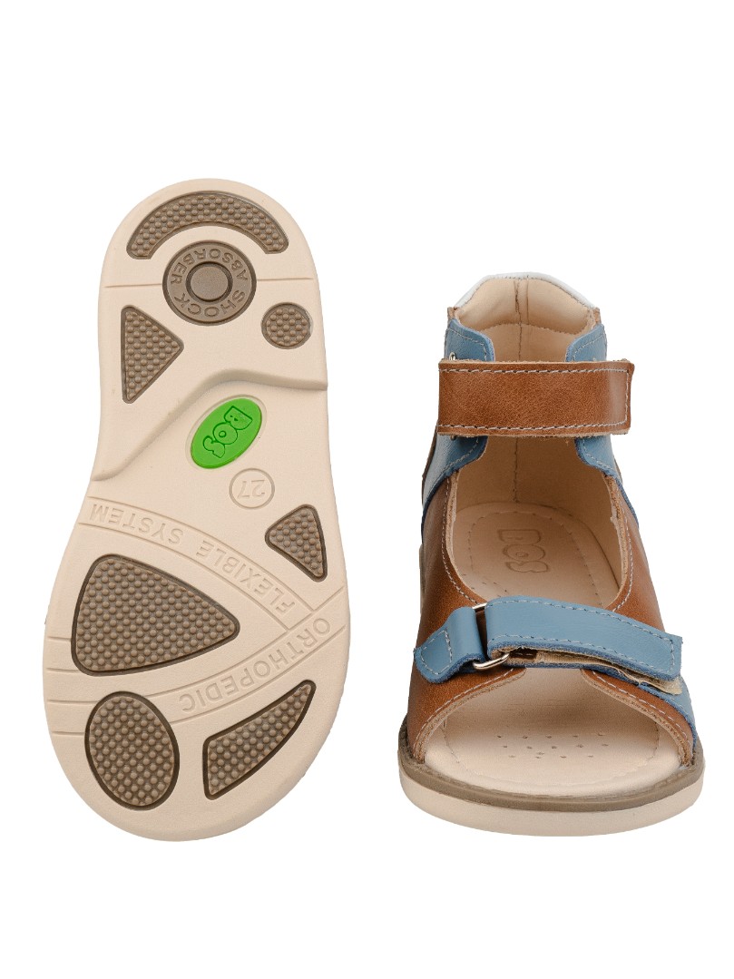 Сандалии для профилактики плоскостопия и плосковальгусной установки стоп. Широкий, устойчивый каблук специальной конфигурации - каблук Томаса. Каблук продлен с внутренней стороны до середины стопы, чтобы исключить заваливание стопы вовнутрь, так называемая косолапость, или вальгусная деформация. Анатомическая стелька с супинатором для правильного формирования свода стопы. Задник максимальной жесткости с удлиненным крылом надежно стабилизирует голеностопный сустав во время ходьбы. Упругая, умеренно-эластичная подошва, имеющая перекат, позволяет повторить естественное движение стопы при ходьбе для правильного распределения нагрузки на опорно-двигательный аппарат ребенка.