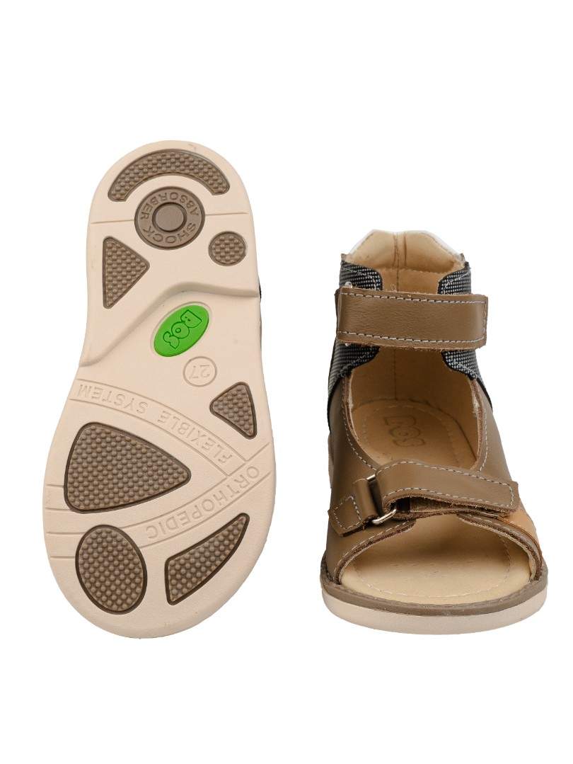 Сандалии для профилактики плоскостопия и плосковальгусной установки стоп. Широкий, устойчивый каблук специальной конфигурации - каблук Томаса. Каблук продлен с внутренней стороны до середины стопы, чтобы исключить заваливание стопы вовнутрь, так называемая косолапость, или вальгусная деформация. Анатомическая стелька с супинатором для правильного формирования свода стопы. Задник максимальной жесткости с удлиненным крылом надежно стабилизирует голеностопный сустав во время ходьбы. Упругая, умеренно-эластичная подошва, имеющая перекат, позволяет повторить естественное движение стопы при ходьбе для правильного распределения нагрузки на опорно-двигательный аппарат ребенка.