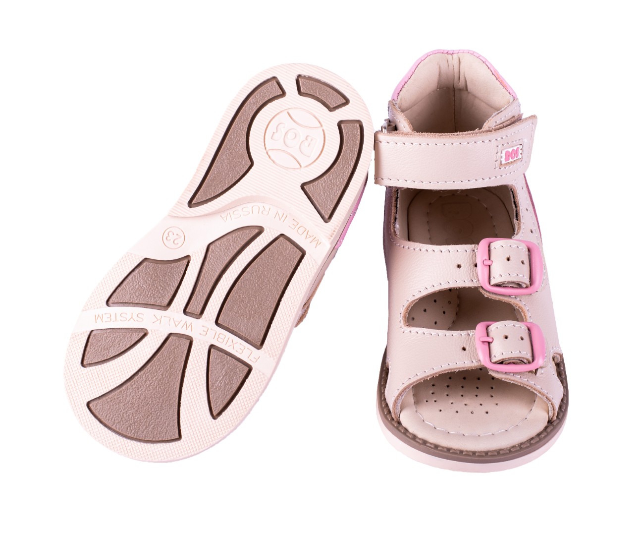 Ортопедические сандалии для профилактики и коррекции плоскостопия и плосковальгусной установки стоп. Широкий, устойчивый каблук специальной конфигурации - каблук Томаса. Каблук продлен с внутренней стороны до середины стопы, чтобы исключить заваливание стопы вовнутрь, так называемая косолапость, или вальгусная деформация. Анатомическая стелька с супинатором для правильного формирования свода стопы. Задник максимальной жесткости с удлиненным крылом надежно стабилизирует голеностопный сустав во время ходьбы. Упругая, умеренно-эластичная подошва, имеющая перекат, позволяет повторить естественное движение стопы при ходьбе для правильного распределения нагрузки на опорно-двигательный аппарат ребенка.