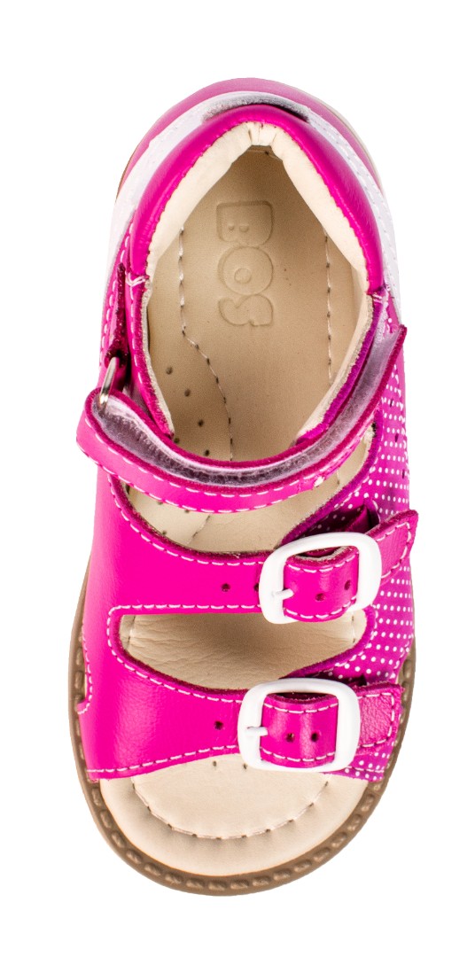Ортопедические сандалии для профилактики и коррекции плоскостопия и плосковальгусной установки стоп. Широкий, устойчивый каблук специальной конфигурации - каблук Томаса. Каблук продлен с внутренней стороны до середины стопы, чтобы исключить заваливание стопы вовнутрь, так называемая косолапость, или вальгусная деформация. Анатомическая стелька с супинатором для правильного формирования свода стопы. Задник максимальной жесткости с удлиненным крылом надежно стабилизирует голеностопный сустав во время ходьбы. Упругая, умеренно-эластичная подошва, имеющая перекат, позволяет повторить естественное движение стопы при ходьбе для правильного распределения нагрузки на опорно-двигательный аппарат ребенка.