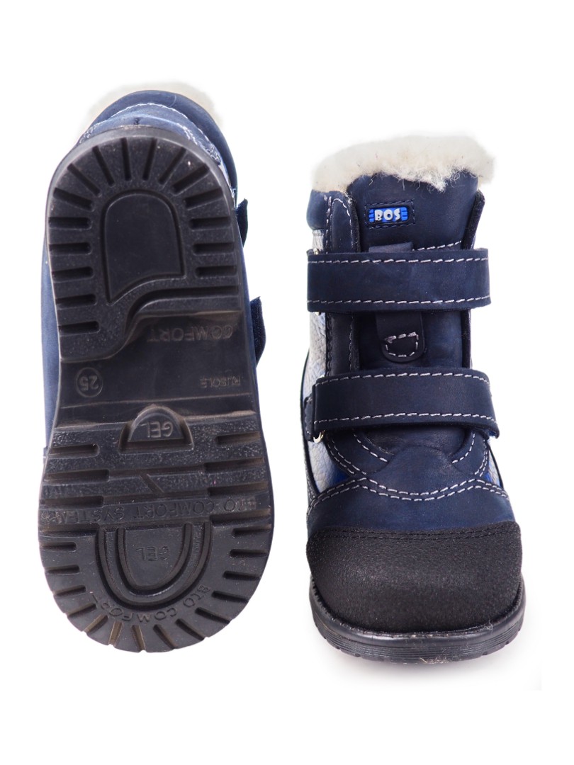 Утепленные ботинки  из натуральной кожи премиум-класса и подкладки из натуральной шерсти, согреют ножки ребенка. При выборе модели с шерстяным мехом, за счет плотности меха, рекомендуем выбирать детскую обувь на 1-1,5 размера больше. Внутри - съёмная стелька с активным супинатором. Жесткий задник надежно фиксирует голеностоп, а липучка "Велкро" помогает регулировать полноту. Умерено эластичная и прочная подошва с каблуком Томаса не скользит и хорошо поглощает ударную нагрузку, что позволяет ножкам ребенка не уставать.