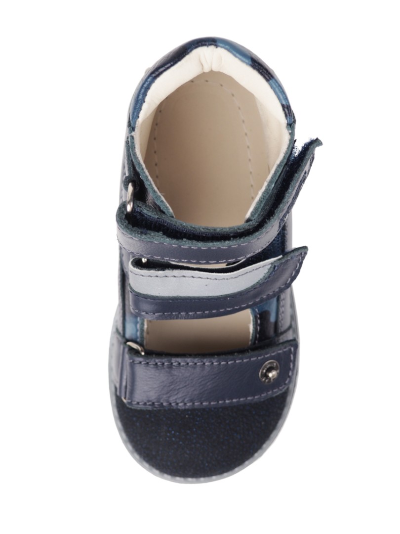 Ортопедические сандалии с высоким берцем для профилактики и коррекции плоскостопия и плосковальгусной установки стоп. Широкий, устойчивый каблук специальной конфигурации - каблук Томаса. Каблук продлен с внутренней стороны до середины стопы, чтобы исключить заваливание стопы вовнутрь, так называемая косолапость, или вальгусная деформация. Ребра жесткости до середины стопы, анатомическая стелька без супинатора, (возможна вкладка своей индивидуальной стельки) для правильного формирования свода стопы. Задник максимальной жесткости с удлиненным крылом надежно стабилизирует голеностопный сустав во время ходьбы. Упругая, умеренно-эластичная подошва, имеющая перекат, позволяет повторить естественное движение стопы при ходьбе для правильного распределения нагрузки на опорно-двигательный аппарат ребенка.